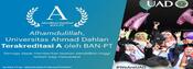 “Terima kasih kepada semua pihak, yang telah mendukung penyelenggaraan pendidikan di Universitas Ahmad Dahlan. Dengan akreditasi ranking A ini, semoga UAD lebih terpacu untuk meningkatkan kontribusi ...