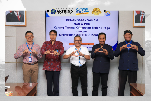 Akprind University resmi menjalin kerja sama strategis dengan Karang Taruna Kabupaten Kulon Progo melalui penandatanganan Nota Kesepahaman (MoU) pada Jumat (20/6). Kerja sama ini menjadi langkah nyata untuk mewujudkan konsep Desa Preneur, yakni desa yang mandiri secara ekonomi melalui pemberdayaan pemuda, inovasi teknologi, dan pendampingan berkelanjutan.