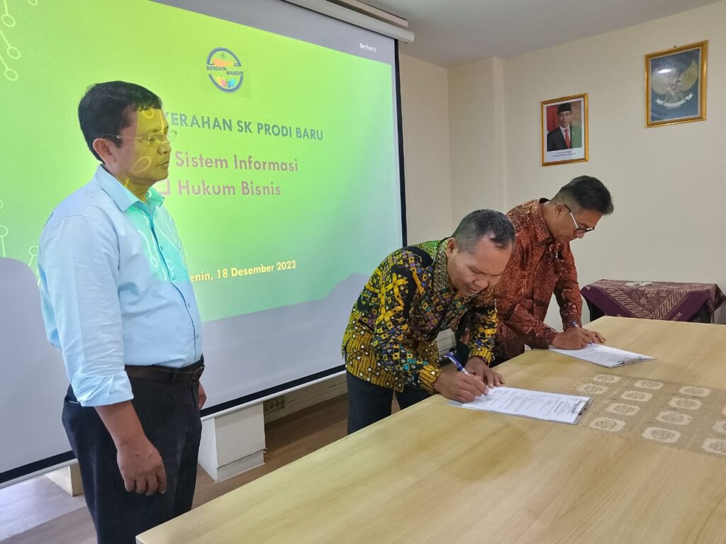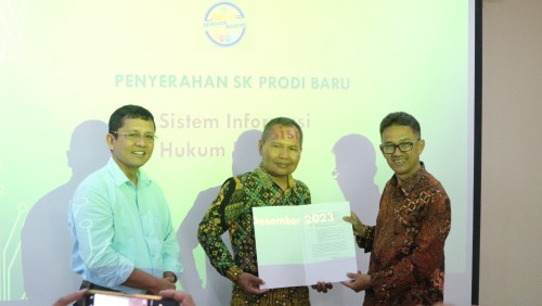 Sebelumnya Penyerahan SK 2 Prodi tersebut dengan pembacaan SK Mendikbudristek No 894/E/0/2023 tentang Izin Pembukaan Prodi Sistem Informasi di UPY dan SK Mendikbudristek No 936 E/0/2023 tentang Izin Pembukaan Prodi Hukum Bisnis di UPY. Dilanjutkan penandatanganan serahterima SK dari Kepala LLDIKTI Wilayah V Yogyakarta, Prof drh Aris Junaidi PhD kepada Rektor UPY Dr Ir Paiman MP disaksikan Ketua Yayasan Pembina UPY Armansyah Prasakti SH SPn MH, dan dihadiri jajaran Dosen, Dekan UPY