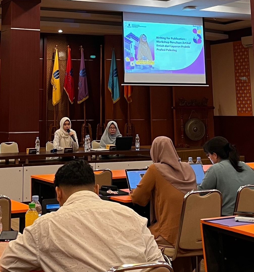 Workshop menghadirkan Martaria Rizky Rinaldi, M.Psi., Psikolog, yang juga merupakan dosen Fakultas Psikologi sebagai pemateri utama. Martaria menyampaikan materi inti mengenai cara mengubah laporan praktik profesi menjadi artikel ilmiah yang layak publikasi.