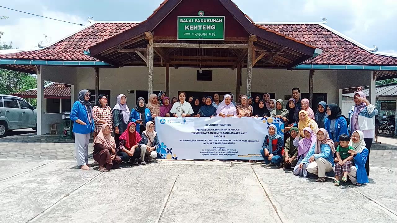 Semangat pemberdayaan masyarakat kembali digelorakan di Padukuhan Kenteng, Kalurahan Wiladeg, Kapanewon Karangmojo, Kabupaten Gunungkidul, melalui kegiatan pelatihan pembuatan Virgin Coconut Oil (VCO) dan balsam berbahan dasar minyak kelapa. Pelatihan yang di inisiasi oleh dosen Universitas Mercu Buana Yogyakarta (UMBY) ini juga dilanjutkan dengan pengemasan produk. Kegiatan ini diselenggarakan pada Sabtu, 12 Oktober 2025 di Balai Dusun Kenteng dan diikuti dengan antusias oleh warga setempat. Kurang lebih sebanyak 36 peserta hadir mengikuti kegiatan tersebut.