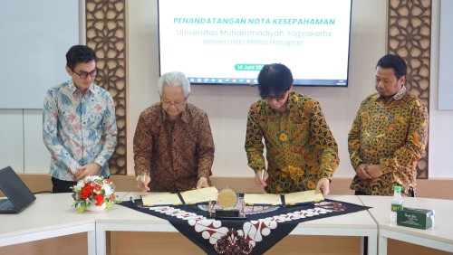 Fakultas Kedokteran Gigi Universitas Muhammadiyah Yogyakarta (FKG UMY) secara resmi menjadi fakultas pendamping bagi Universitas Pelita Harapan (UPH) yang akan segera membuka fakultas dan program studi kedokteran gigi. Kerja sama ini mulai berjalan semenjak pengadaan Memorandum of Understanding (MoU) antara UMY dengan UPH yang berlangsung pada Jumat (14/6) dan ditandatangani langsung oleh rektor dari kedua perguruan tinggi. MoU tersebut tidak hanya terbatas dalam pendampingan pembentukan program studi baru, namun juga akan berfokus kepada aspek lain dalam Tri Dharma perguruan tinggi.