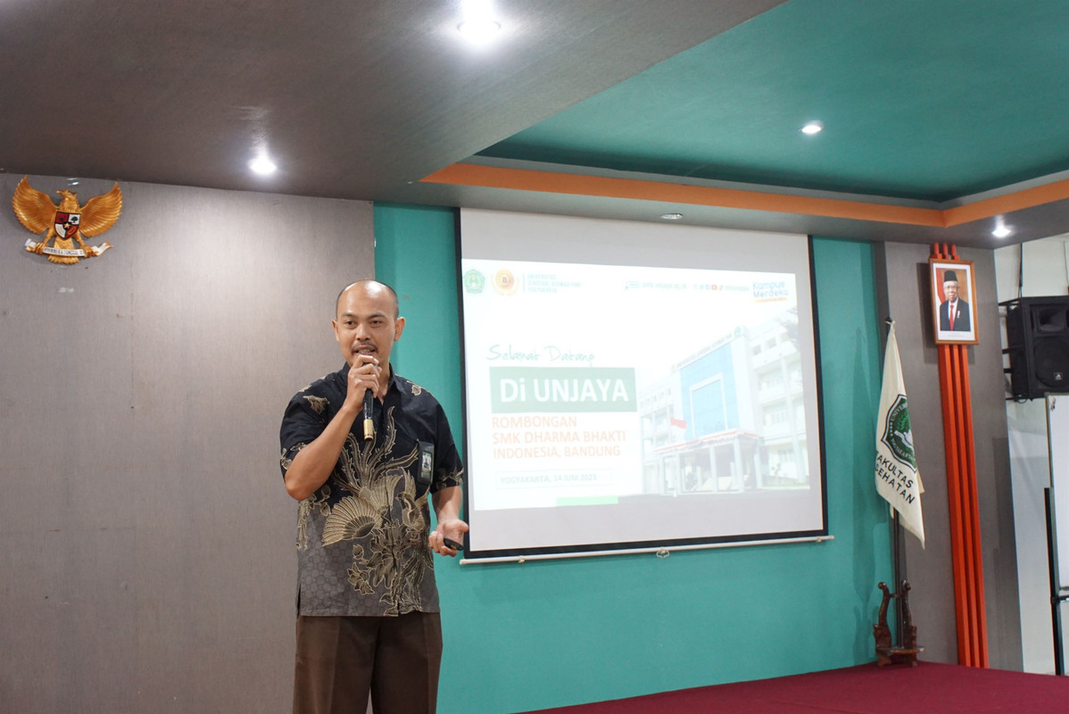 SLEMAN – Bertempat di Gedung Serba Guna Kampus 2, Universitas Jenderal Achmad Yani Yogyakarta (Unjaya) kembali menerima kunjungan dari SMK Dharma Bhakti Indonesia (DBI) Kabupaten Bandung, Jawa Barat pada Rabu, (14/6/2023). Rombongan SMK DBI Bandung yang terdiri dari 33 Siswa dan 6 guru pendamping dipimpin oleh Wakil Kepala Sekolah Bidang Kurikulum, Agus, S.Pd. diterima langsung oleh Kabiro Kerja Sama, Promosi, dan Admisi (KPA) Unjaya, Bambang Tri Sutrisno, S.Kom., M.Kom.