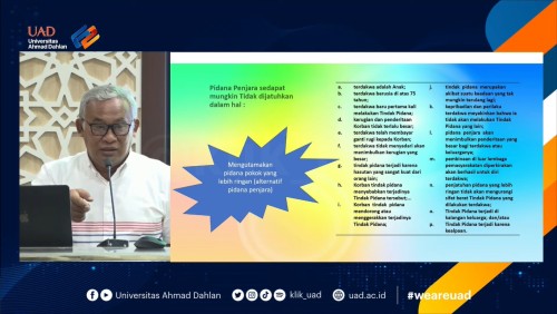 Dalam sesi “Seminar Nasional Pembaruan Kitab Undang-Undang Hukum Pidana (KUHP): Menyinergikan Keadilan, Kemanfaatan, dan Kepastian Hukum” pada Selasa, 27 Desember 2022 di Universitas Ahmad Dahlan (UAD), Prof. Dr. Marcus Priyo Gunarto, S.H., M.Hum. menyampaikan tentang perkembangan konsep pidana dan pemidanaan pada KUHP dan pasal-pasal kontroversial pada KUHP. Ia selama ini dikenal sebagai tim penyusun KUHP sekaligus pakar hukum pidana Universitas Gadjah Mada (UGM).