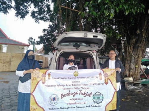 Himpunan Keluarga Mahasiswa Teknologi Pangan (Hikmatepa) Fakultas Sains dan Teknologi (FST) Universitas Widya Mataram (UWM) bekerjasama dengan Alumni Fakultas Teknologi Pertanian (Alfateta) UWM berbagi takjil bagi warga di kawasan Bantul.
