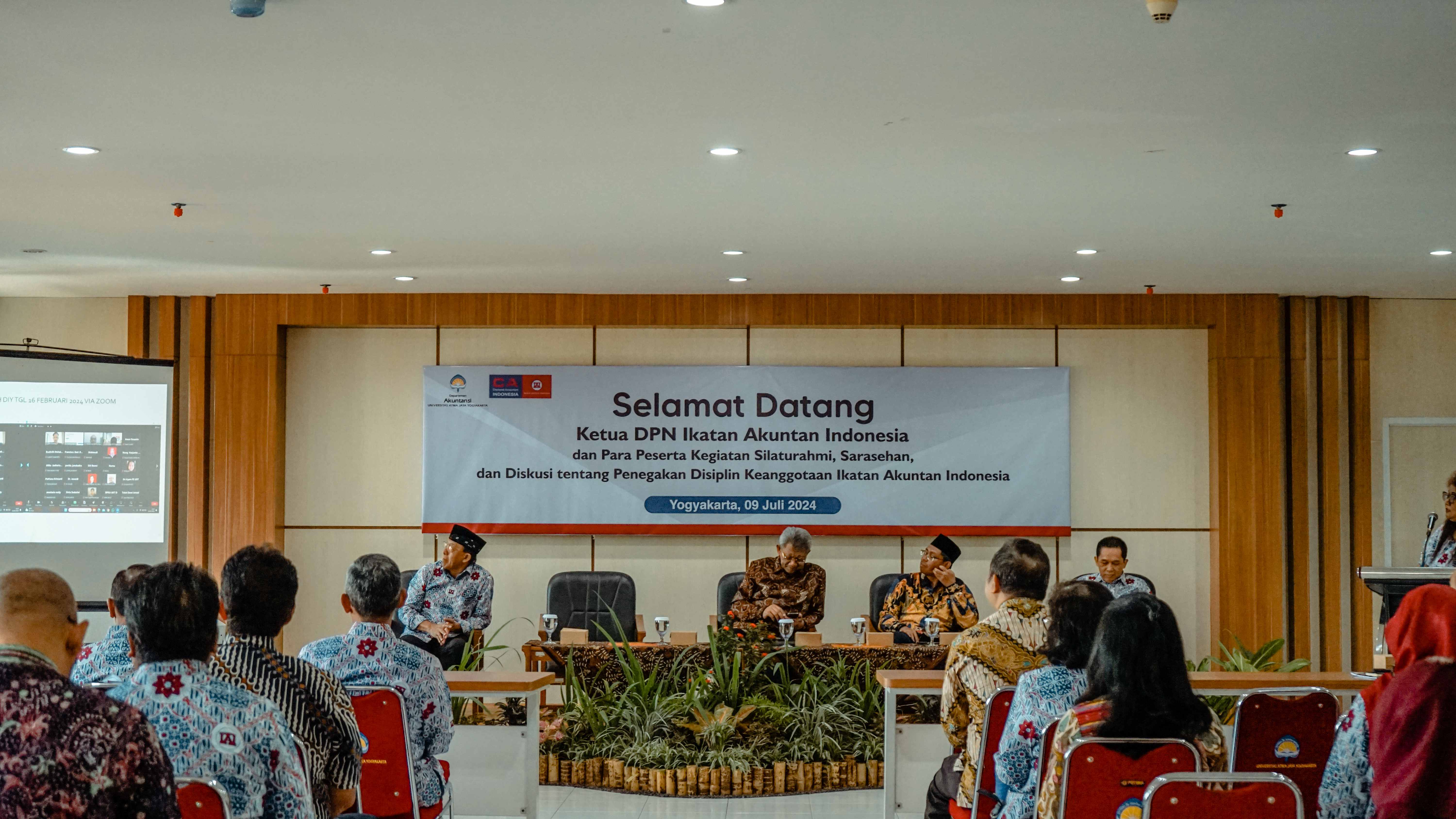 Program Studi Akuntansi Fakultas Bisnis dan Ekonomika Universitas Atma Jaya Yogyakarta (FBE UAJY) menjadi tuan rumah dalam Dialog Silaturahmi, Sarasehan, dan Diskusi tentang Penegakan Disiplin Keanggotaan Ikatan Akuntan Indonesia (IAI) yang berlangsung pada hari Selasa (9/7) di Ruang Seminar Kampus 3, Gedung Bonaventura UAJY. Dialog ini dihadiri oleh 97 pengurus IAI DIY dan jajaran pemangku kepentingan lainnya.