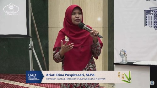 Ketua Pimpinan Pusat ‘Aisyiah Ariati Dina Puspitasari, M.Pd. berkesempatan menjadi pemateri pada Kajian Rutin Jelang Buka Puasa di Islamic Center (IC) Universitas Ahmad Dahlan (UAD) pada Minggu, 2 April 2023. Ia membahas tentang orang-orang yang dirindukan surga.