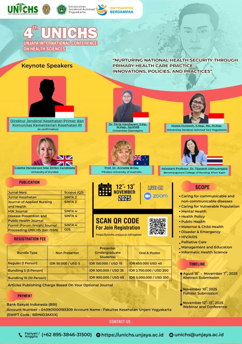 Program Studi Keperawatan dan Pendidikan Profesi Ners Universitas Jenderal Achmad Yani Yogyakarta mempersembahkan The 4th UNICHS (The 4th UNJAYA International Conference of Health Sciences).