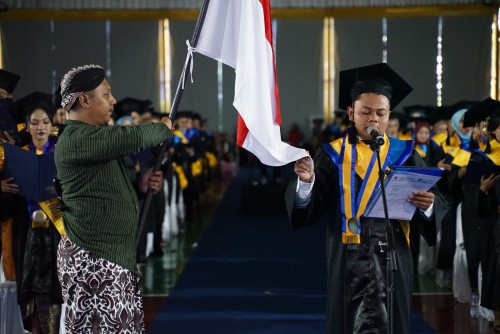 Lulusan terbaik tingkat universitas pada wisuda periode April 2025 ini, untuk Strata 1 (S1) berasal dari Fakultas Ekonomi Program Studi Akuntansi dengan IPK 3,95 atas nama Lita Adeka Sekty, sedangkan lulusan terbaik Strata 2 (S2) berasal dari Magister Ilmu Pangan diraih oleh Devia Fitri Astuti dengan IPK 3,98.