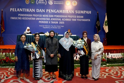 Sleman— Universitas Jenderal Achmad Yani Yogyakarta (Unjaya) menggelar Pelantikan dan Pengambilan Sumpah Profesi Ners dan Profesi Bidan Periode II Tahun 2025 sebagai wujud komitmen dalam mencetak tenaga kesehatan profesional dan berintegritas. Kegiatan berlangsung pada Rabu (29/10/2025) di The Rich Jogja Hotel, Sleman.