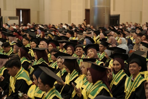 Yogyakarta - Universitas ‘Aisyiyah (Unisa) Yogyakarta mewisuda 1.132 mahasiswa, di Convention Hall Masjid Walidah Dahlan, Sabtu (4/10/2025). 900 mahasiswa atau 80 persen dari mahasiswa yang diwisuda mendapat predikat cum laude.