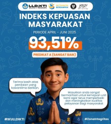 Bersama ini dengan hormat kami sampaikan hasil pengukuran Indeks Kepuasan Masyarakat LLDIKTI Wilayah V Tahun 2025 Triwulan I Periode Januari - Maret.